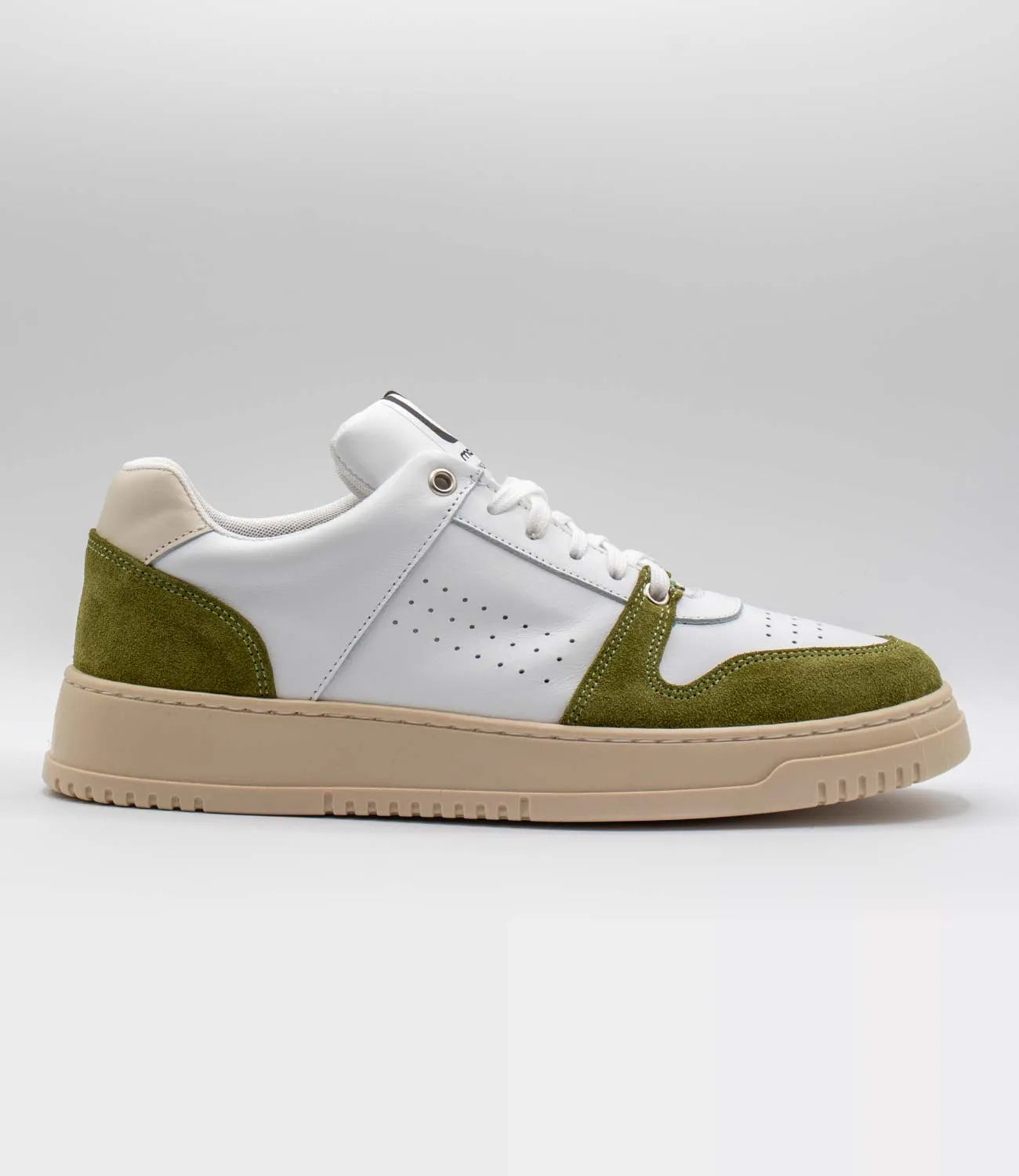 ACQUISTA ORASneakers In vera pelle bianca, impreziosita da inserti in camoscio verde e grigio, questa sneakers è il perfetto equilibrio tra eleganza e personalità. La soletta anatomica, la suola ultraleggera e l’interno in cuoio traspirante assicurano un comfort che dura tutto il giorno. Prodotto 100% made in Italy interamente fatte a mano dai nostri artigiani calzaturieri.
